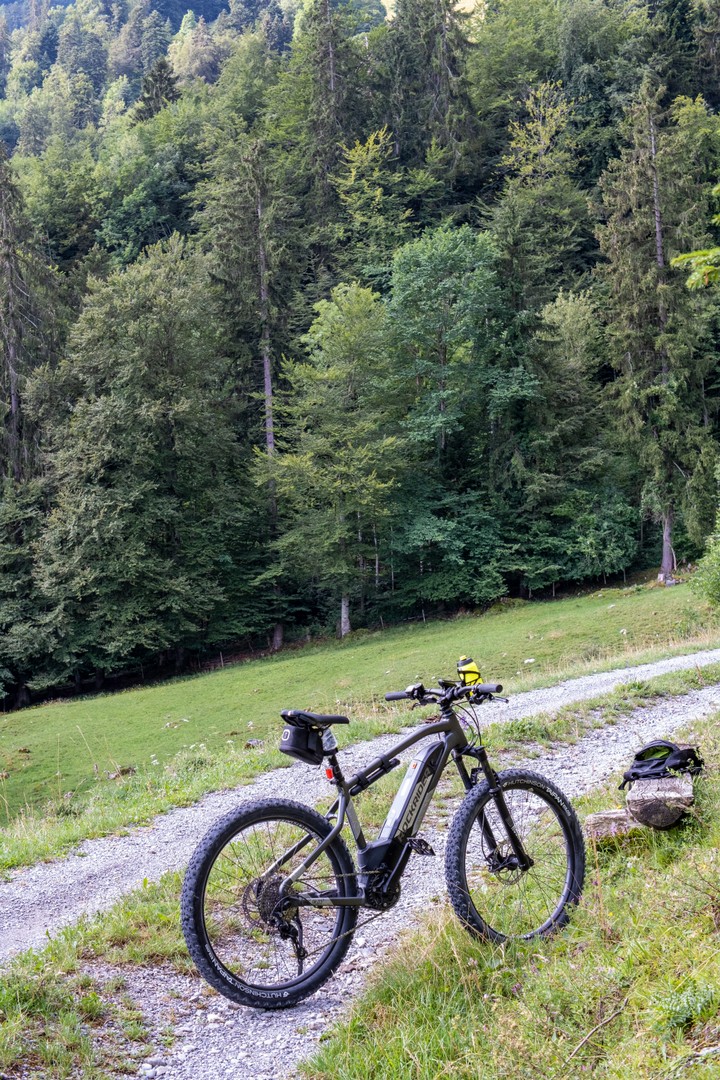 Nach dem Rast und Sicht geniessen, verläuft der Weg weiter ansteigend bis er schliesslich in der Mattenweg mündet, welcher Reutigen mit der Alp Günzene verbindet. Die Abfahrt wird ein Belastungstest für Fahrer und Material, glühend heiss sind in Reutigen die Bremsscheiben.