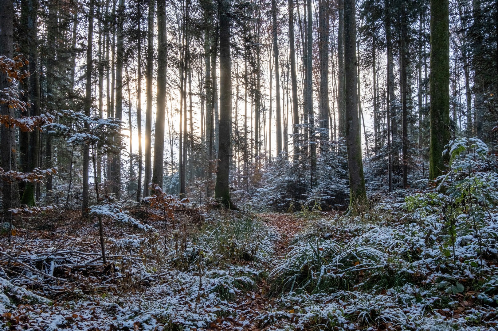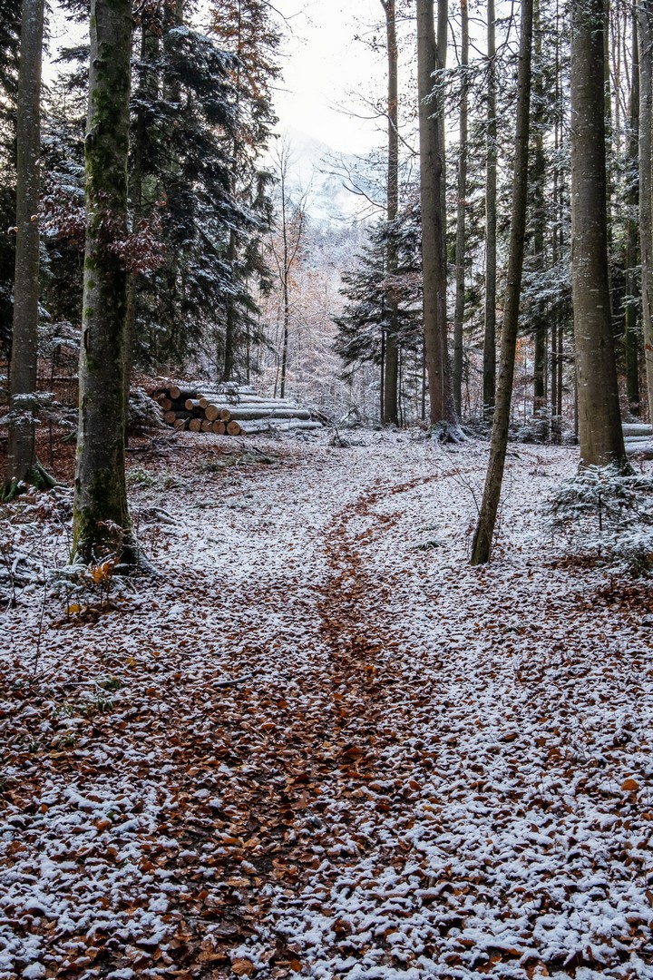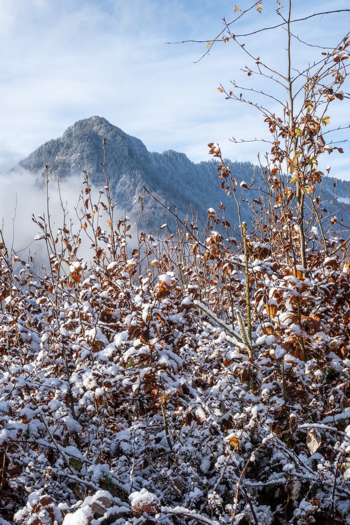 Am 1. Advenstwochenende 27./28. November 2021 gabs das erste Schäumchen Schnee. Der Rustwald bei Spiez war fein überzuckert. Am nächsten Morgen zeigte sich das Seeufer bei Gwatt in einem ganz feinen weissen Kleid, welches auch bald geschmolzen war.