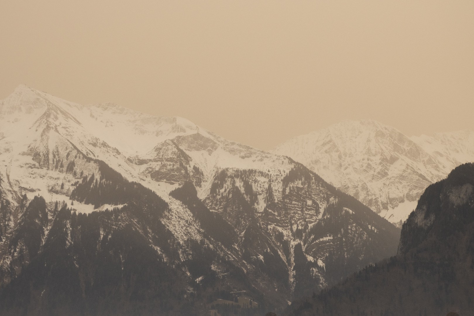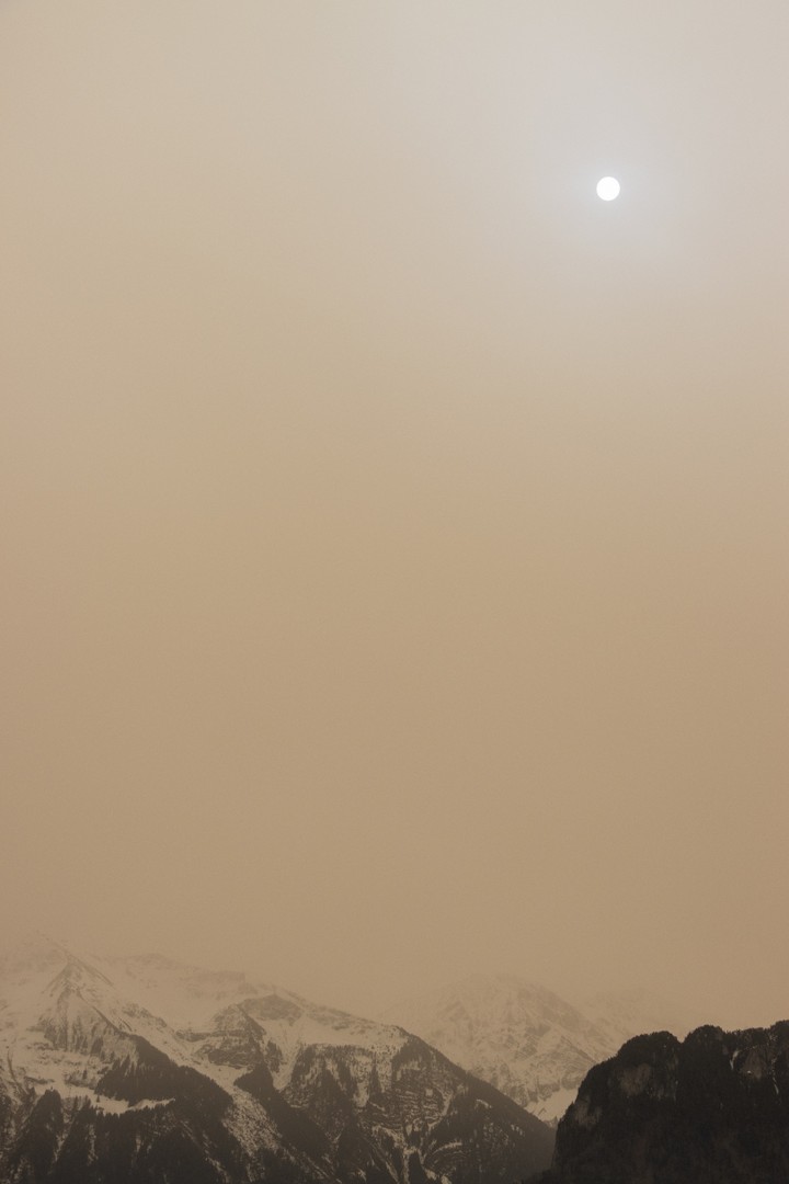 starken Südströmung viel Sahara-Staub herangeführt wird.