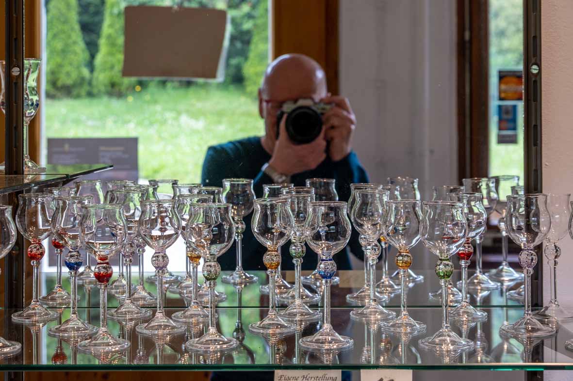 Glasblasen ist ein typisches Schwarzwälder Handwerk. In Altglashütten zwischen Bärental (oberhalb Titisee) und dem Schluchsee besuchten wir eine kleine Glaserei. Der kreative Glasbläser demonstrierte das Erstellen eines Weinglases. Farbige Kugeln fotografierte er und arrangierte verblüffende Bilder, welche in Glas gefasst jedes Wohnzimmer aufwerten.