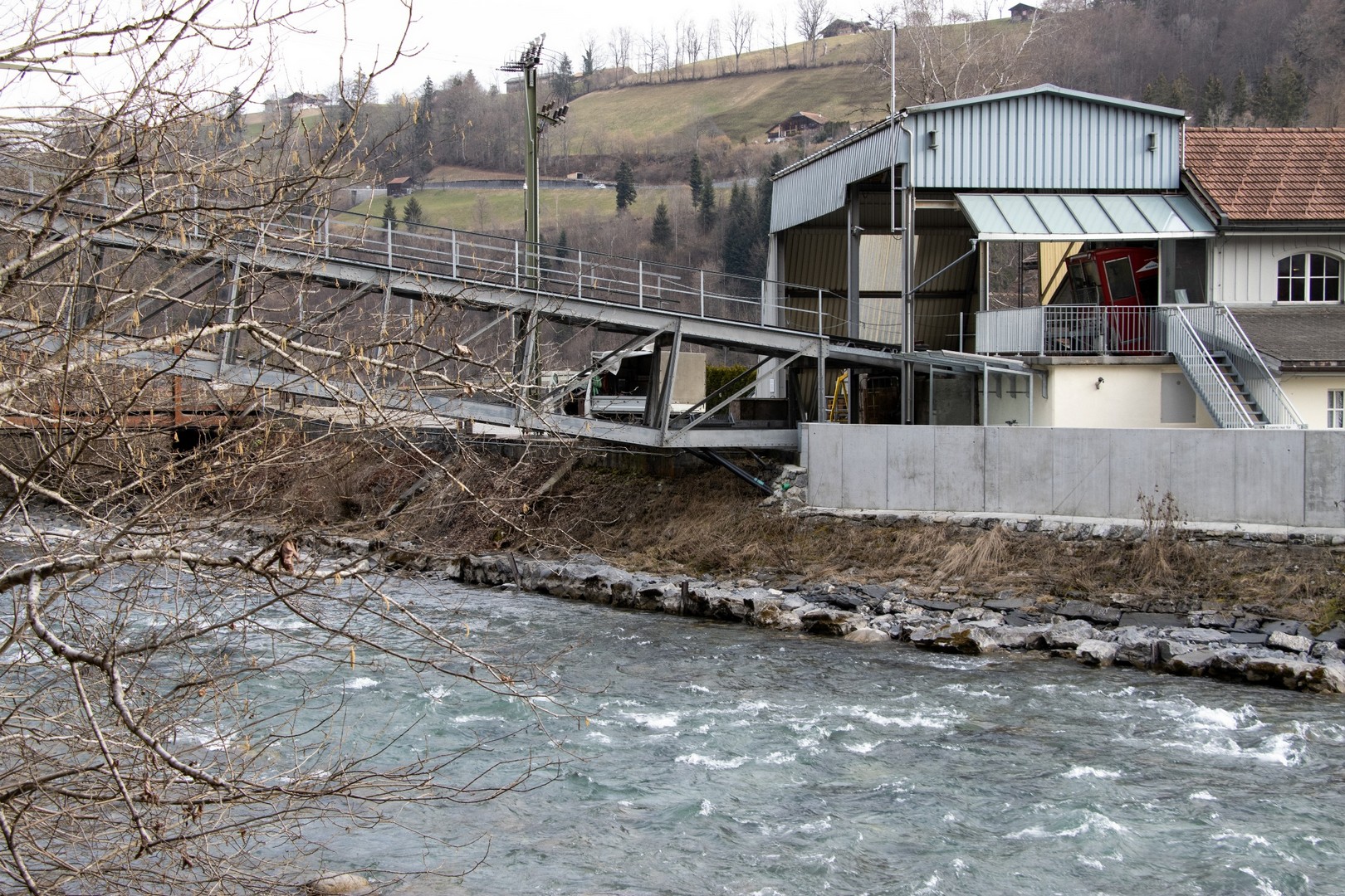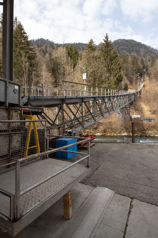 Eine ganz spezielle Konstruktion bietet die Niesenbahn. Die Standseilbahn überquert die Kander in Mülenen bereits in der Steigung, d.h. die Brücke bildet eine schiefe Ebene - eigenartig zum Fotografieren.
